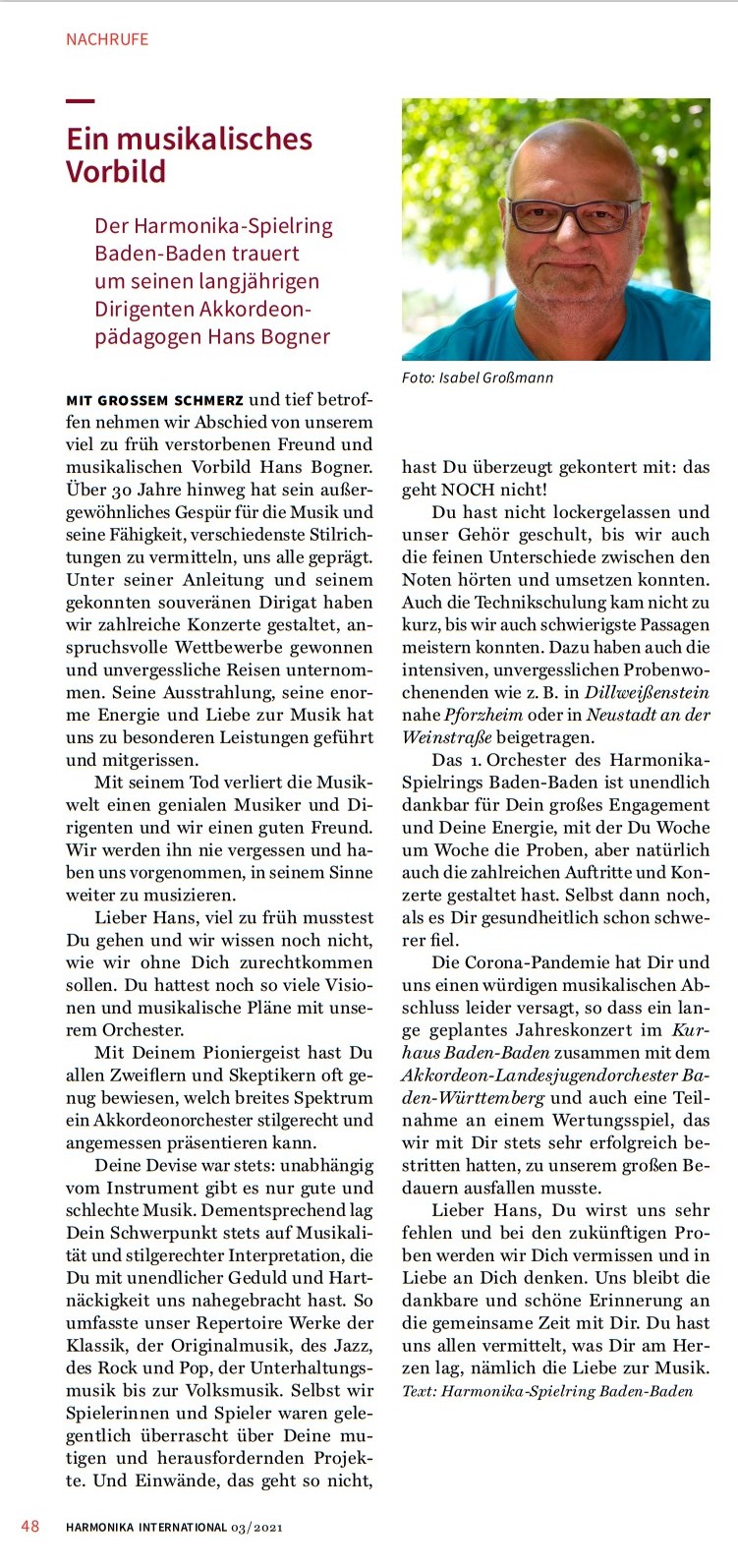 Nachruf in der "Harmonika International" Ausgabe 03/21