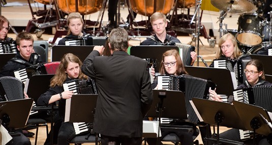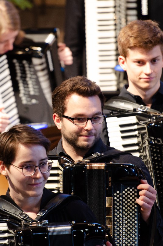 Die rund 30 Orchesterspieler sind im Alter von 16 bis 27 Jahren und werden jährlich neu ausgewählt. Die ebenfalls jährlich neu bestimmten Dirigenten setzen immer frische Akzente und halten so das Orchester auf einem hohen musikalischen Niveau. Das Repertoire ist vielseitig und beinhaltet neben zeitgenössischer Originalmusik für Akkordeon auch klassische und folkloristische Werke.